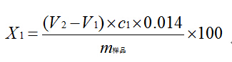 式中:X1- 樣品中全氮的含量(以氮計),g/100g;